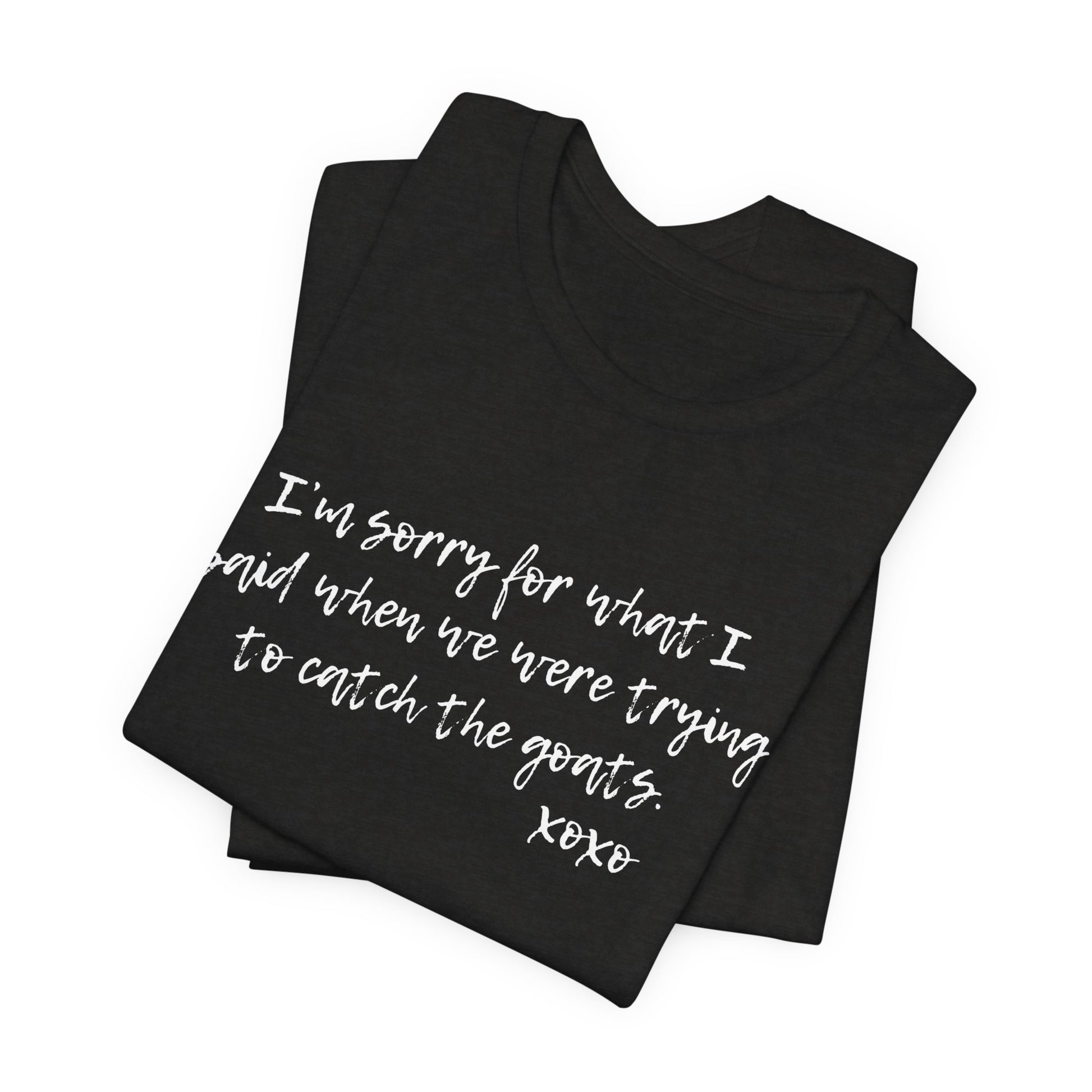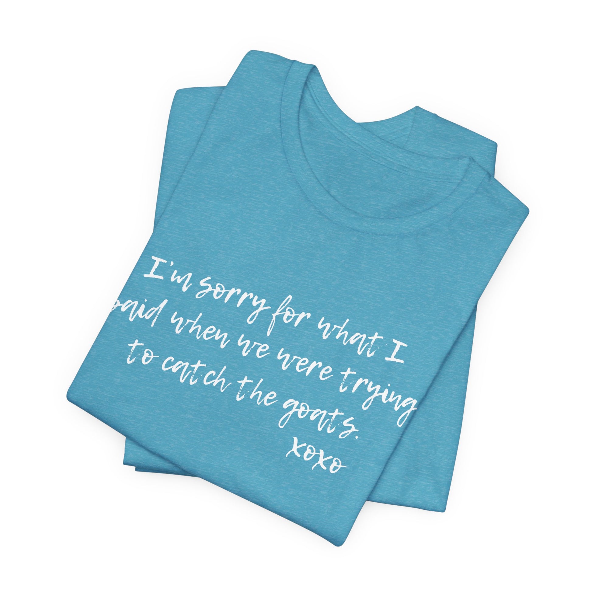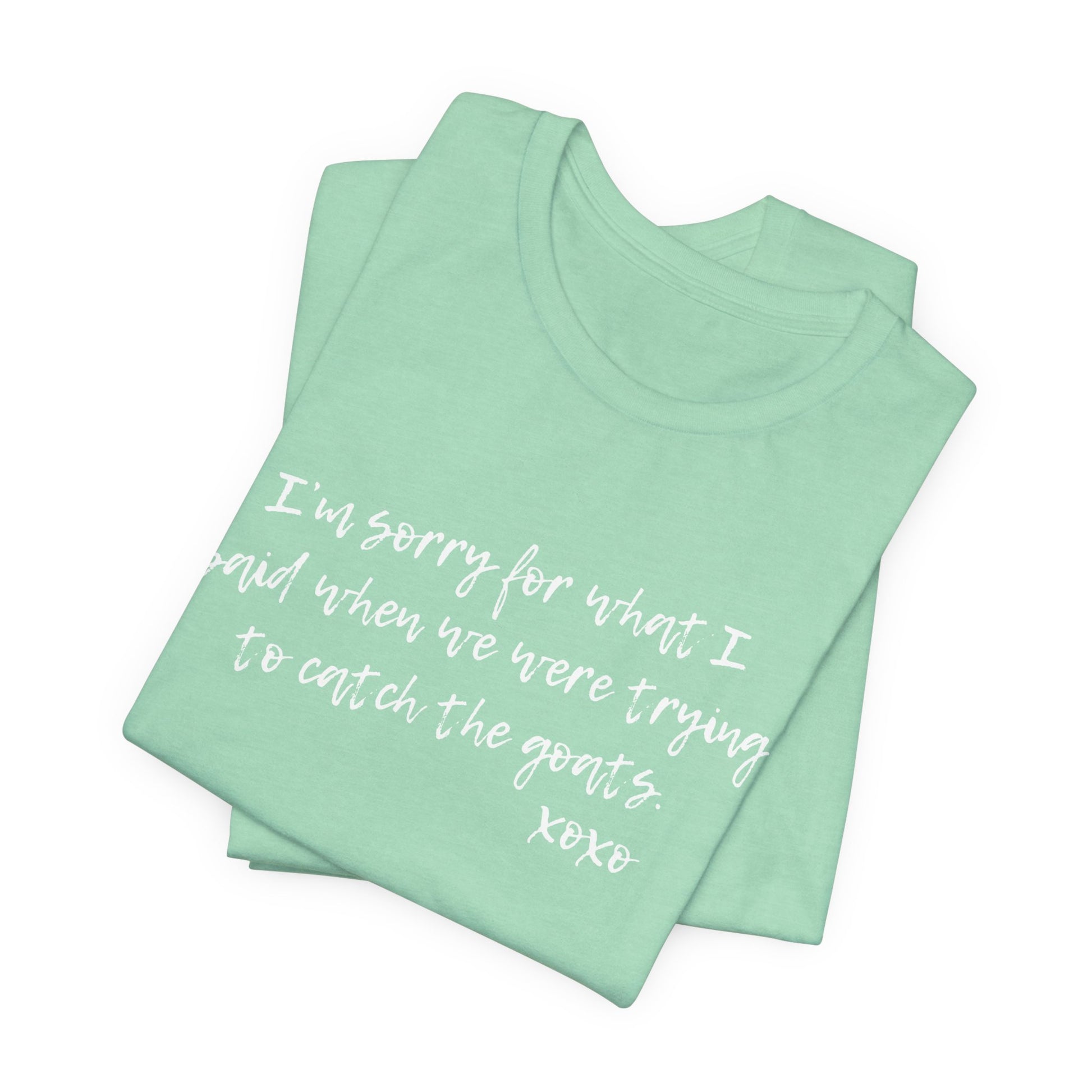 We all get a little, crabby, after over-exerting ourselves sometimes and we sometimes might let a few casual words slip out...but I LOVE YOU, I swear! This tee shirt helps everyone know we are indeed human, but sometimes a little sass might come out when we are dying from chasing the goats!!